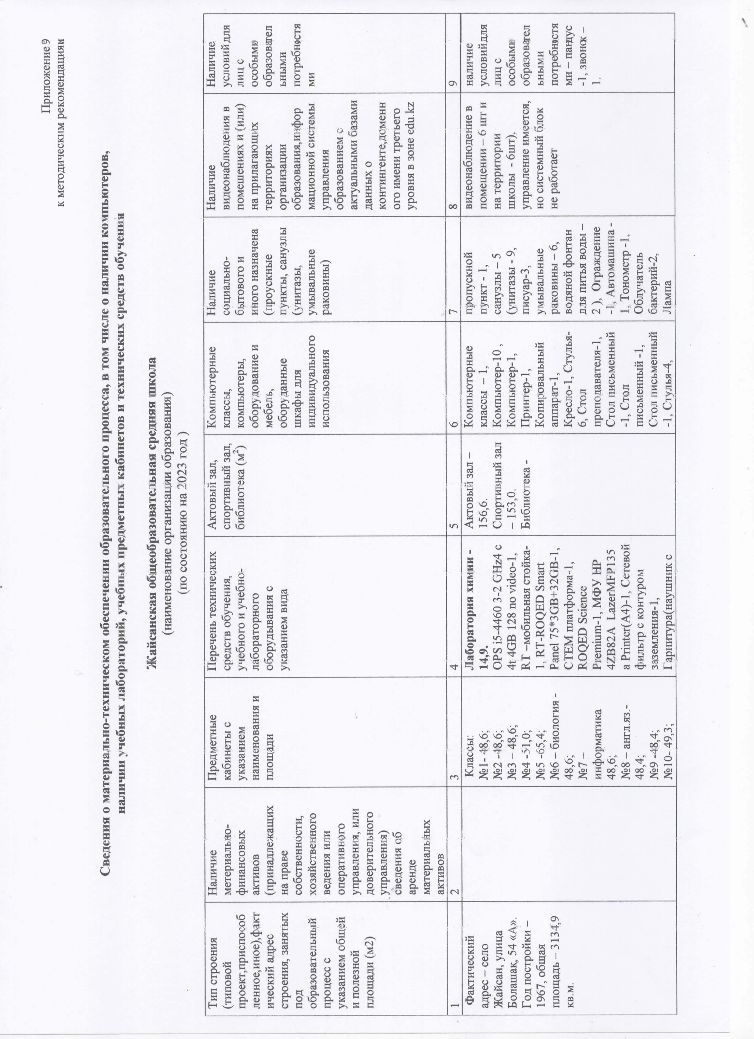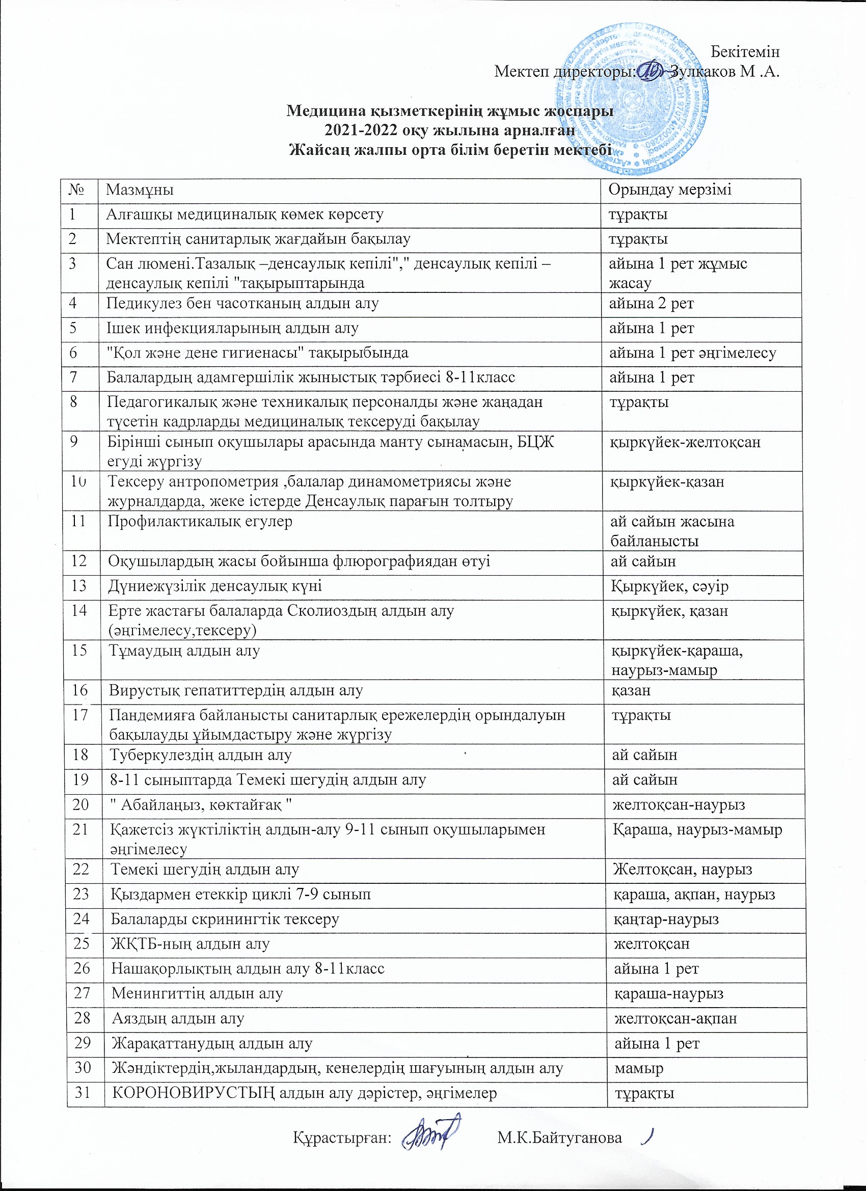 | 15 | Сведения о наличии медицинского обслуживания Жайсаң ЖОББМ | |
