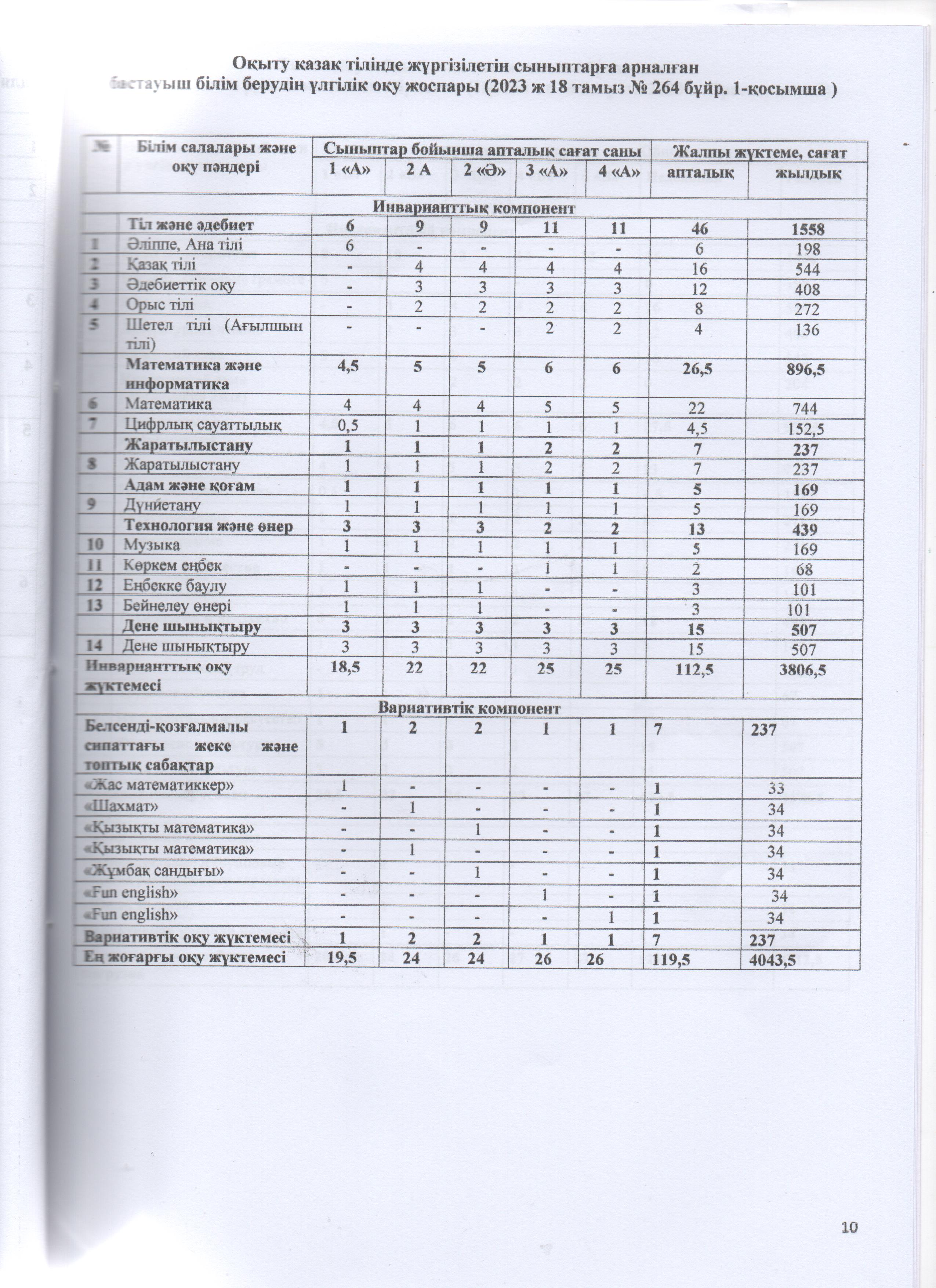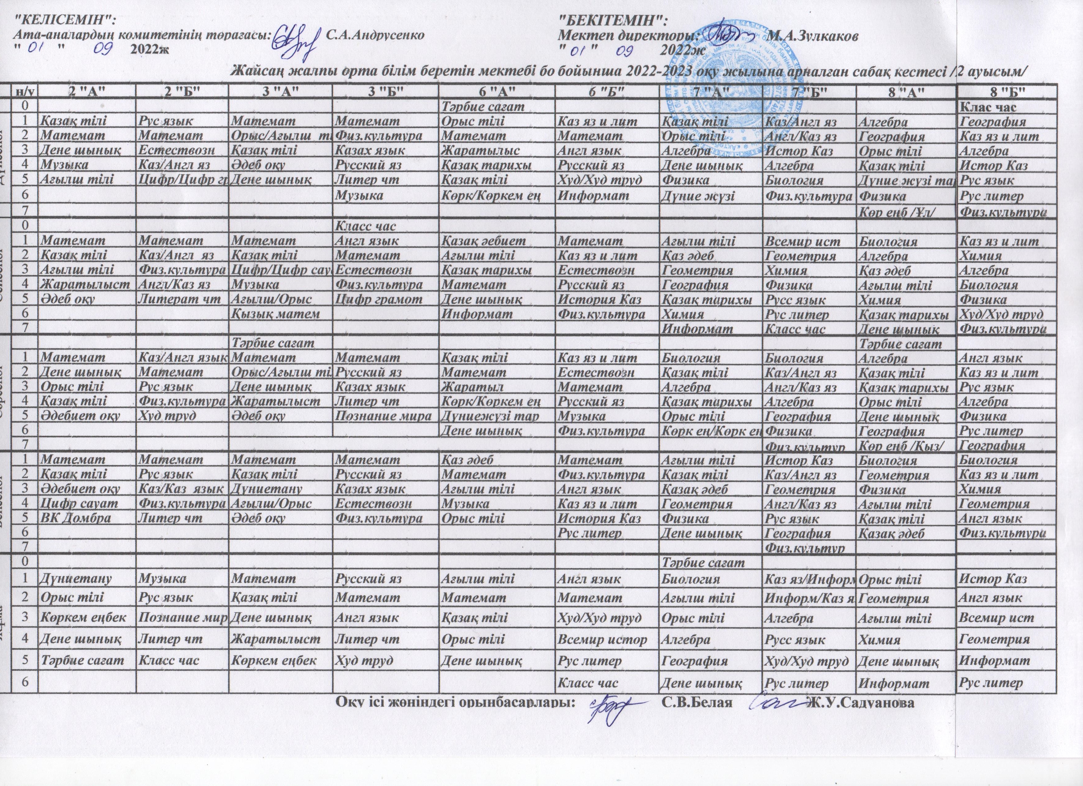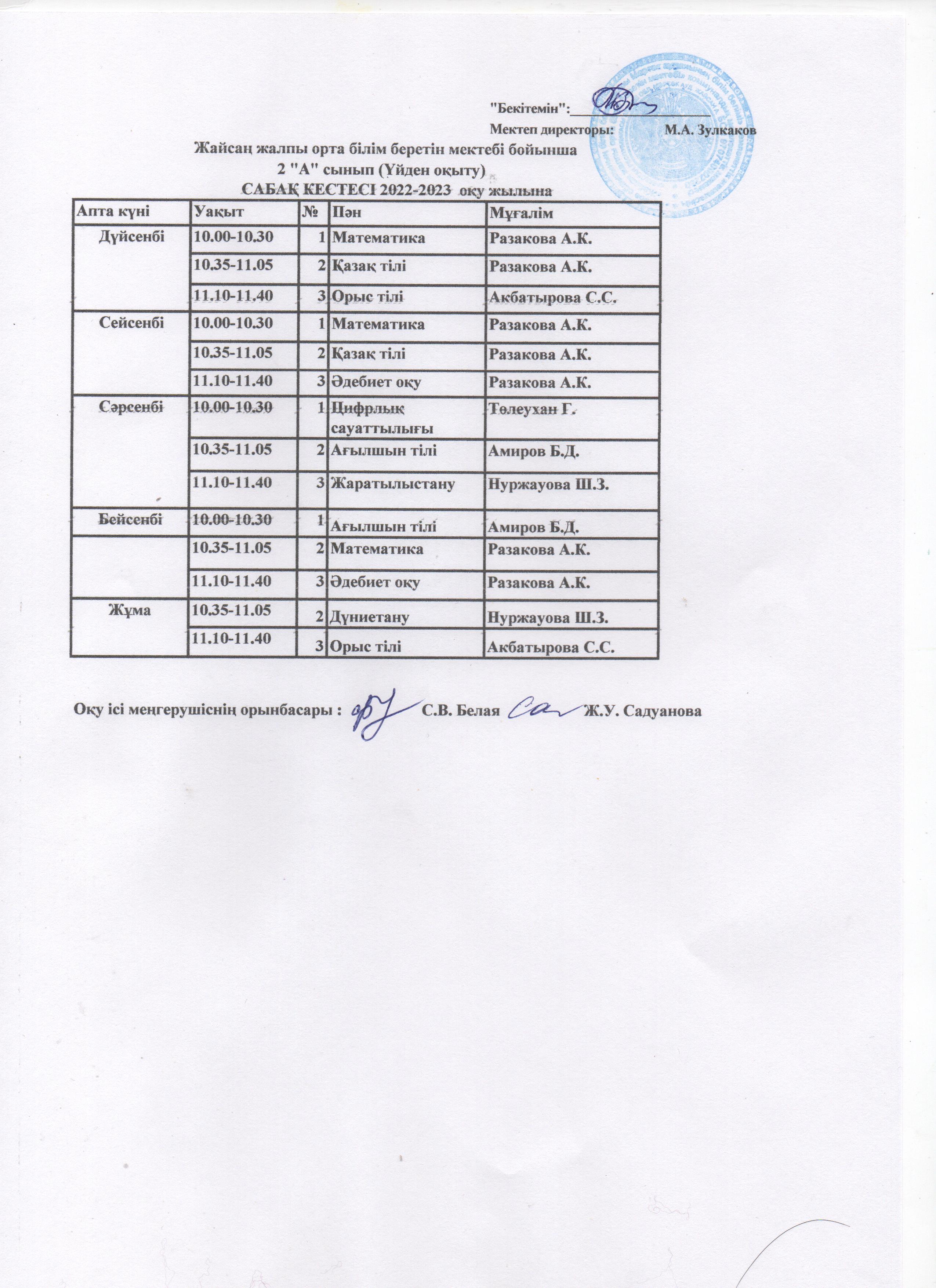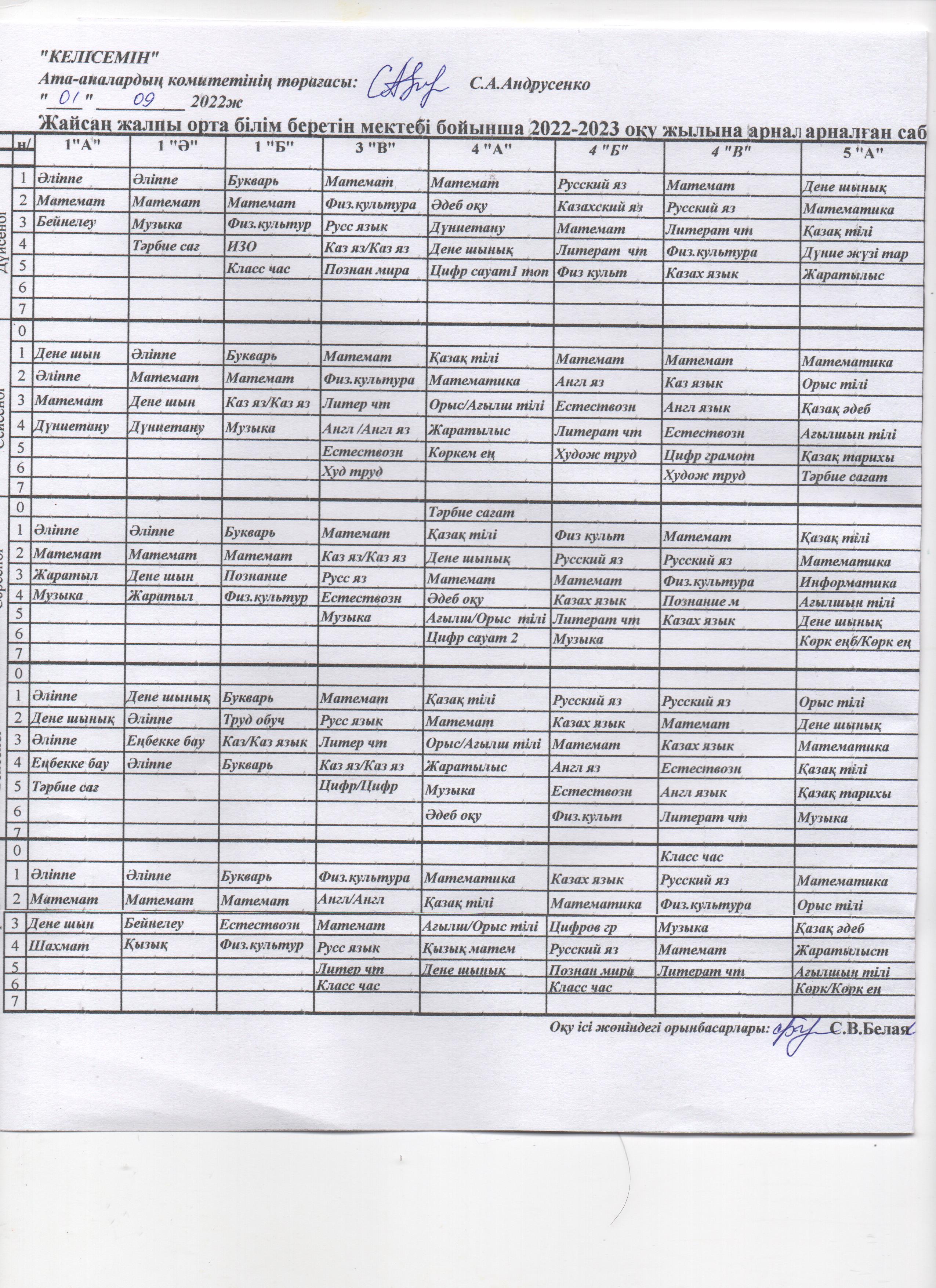 Сабақ кестесі Жайсаң ЖОББМ 2023-2024жж