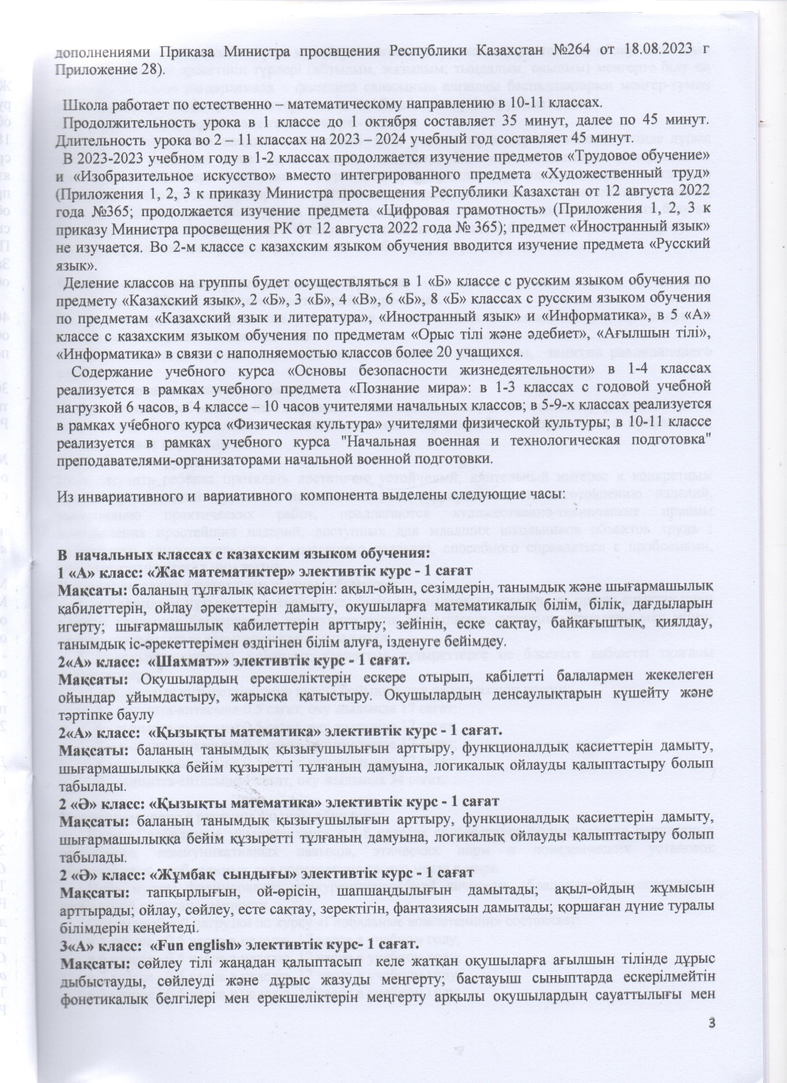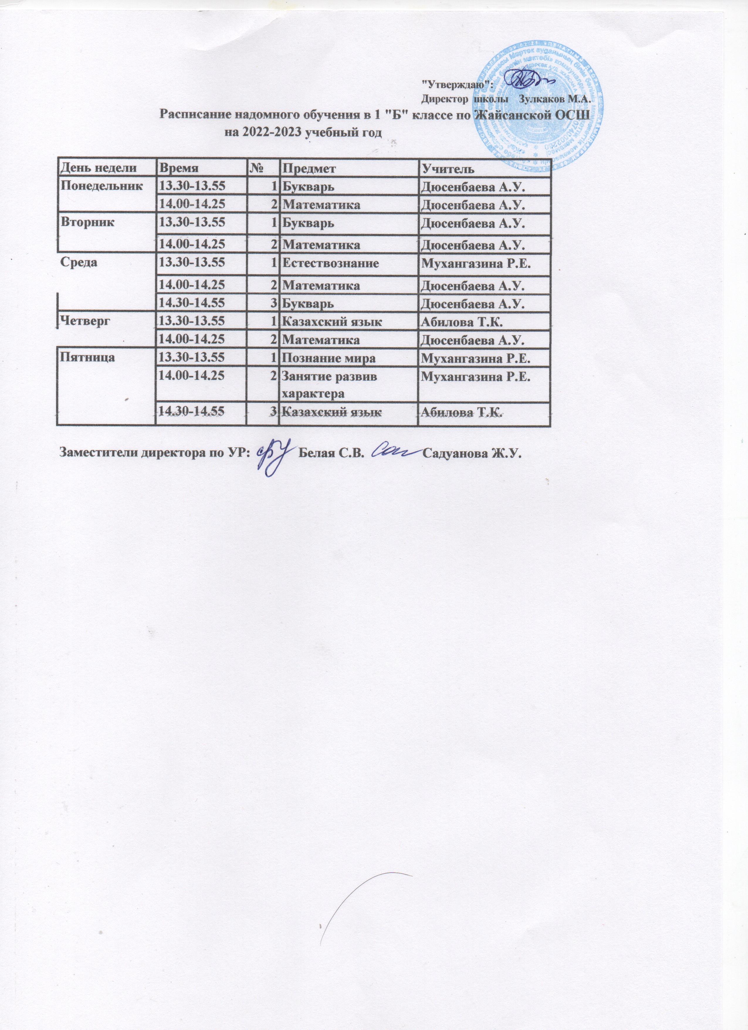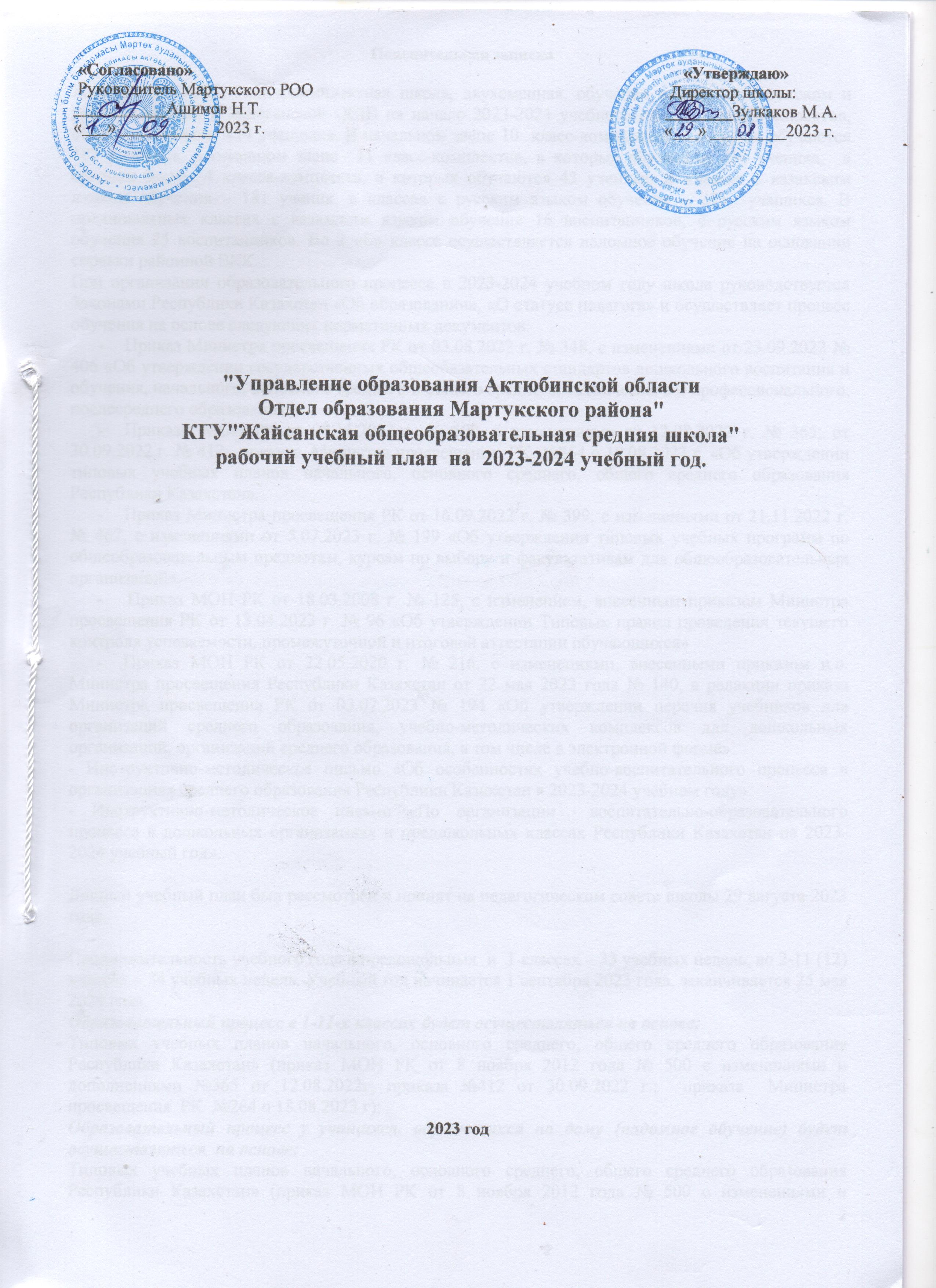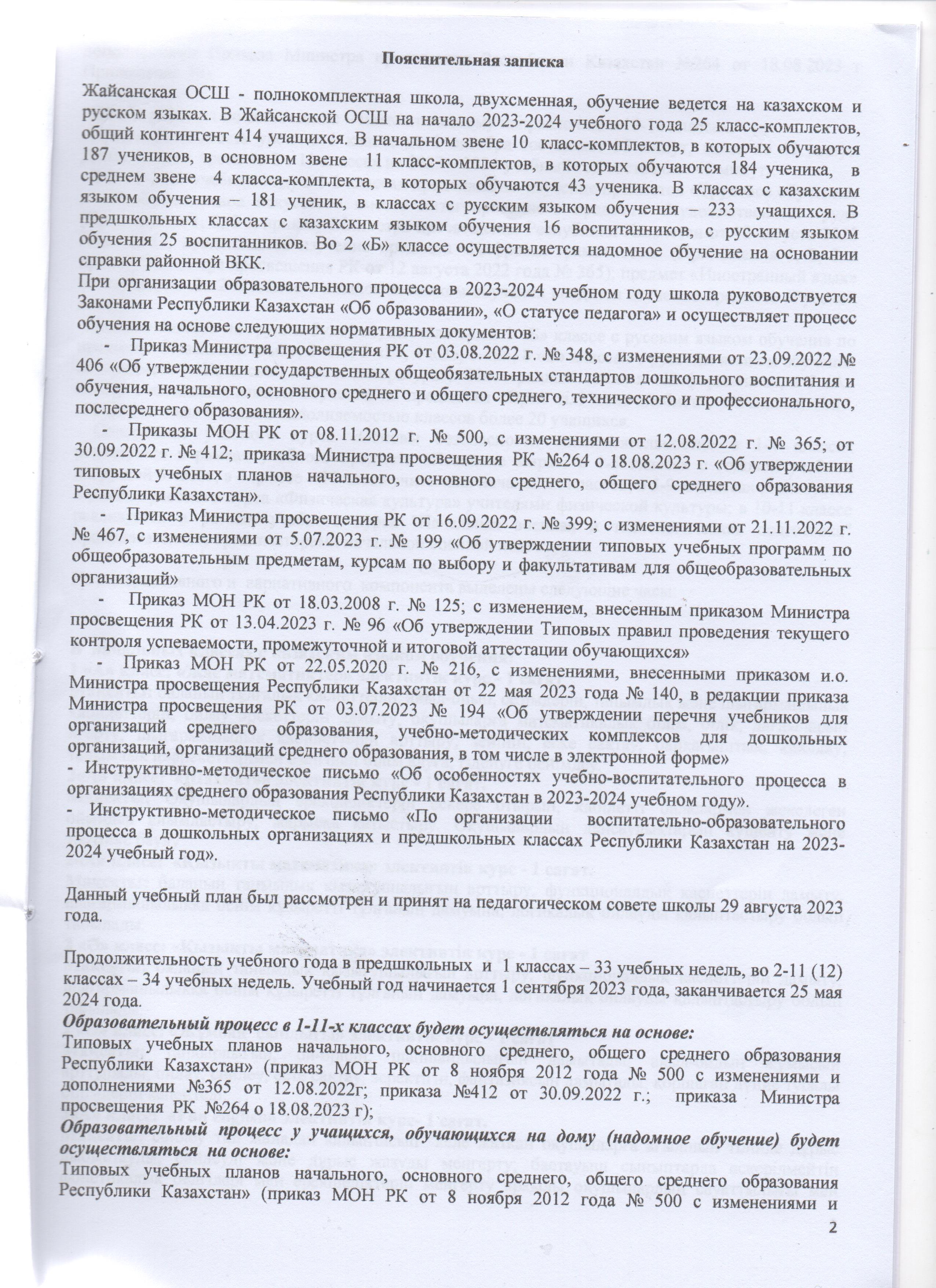 Сабақ кестесі Жайсаң ЖОББМ 2023-2024жж